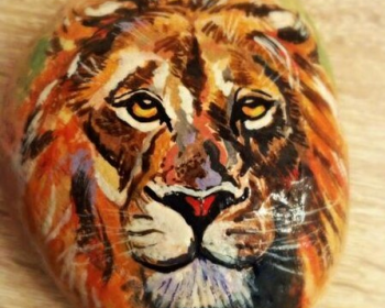Роспись гальки. Лев