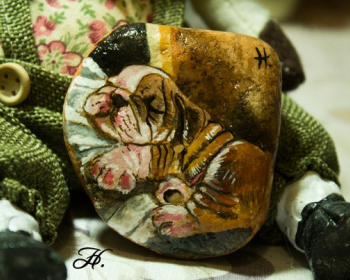Роспись по камням. Спящий щенок