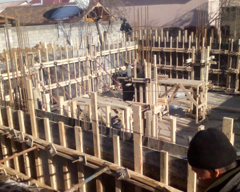Дом на 450 кв.м. из красного кирпича, с монолитным ж/б каркасом, кровля покрыта мягкой черепицей.