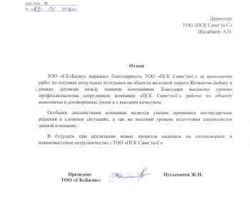 Работы по изготовлению и поставке блочно-модульных котельных на объекты железной дороги Жезказган-Бейнеу.